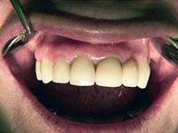 Die verblendeten Kronen verbleiben dauerhaft im Mund.